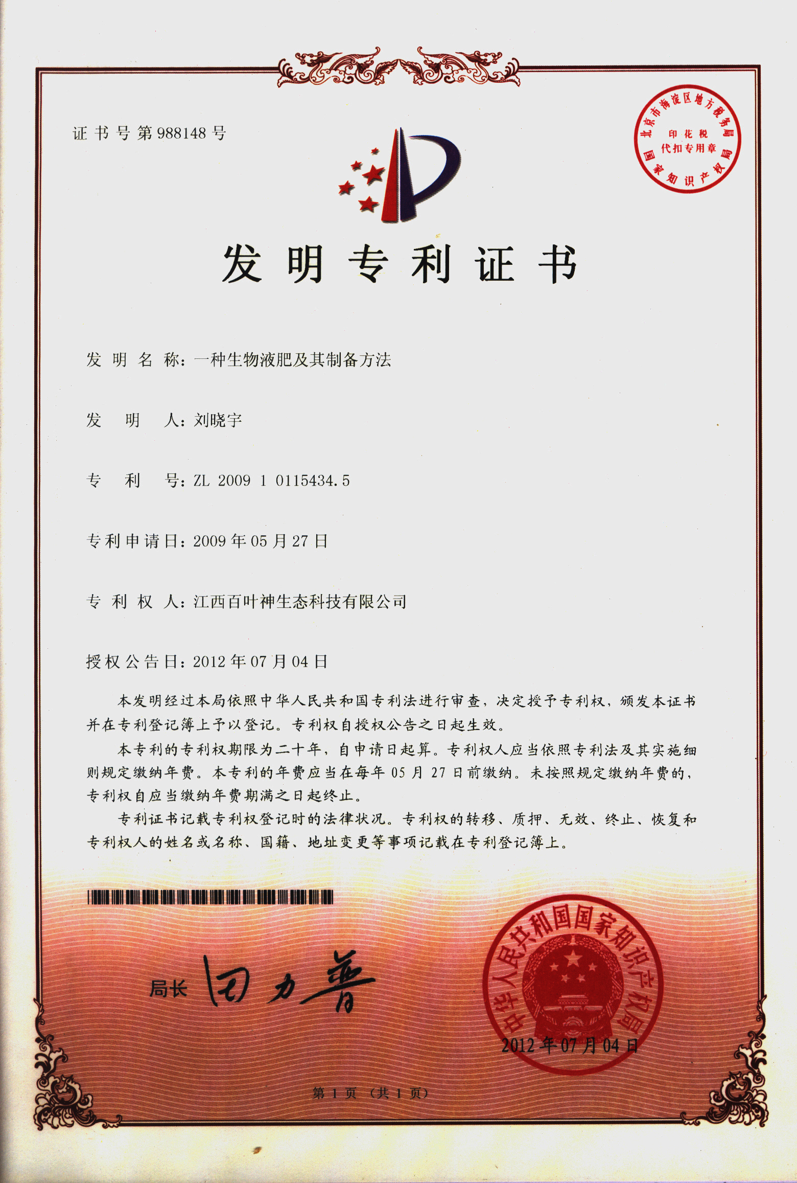 天意生物集團始終堅持EM環保理念,時刻不忘從里到外將國外先進技術打造成中國品牌,經過多年不懈努力,終于攻克并掌握了EM原露的生產方法,并由此開發系列產品,獲得國家多項發明專利(專利號:ZL 2009 1 0115498.5、ZL 2009 1 0115434.5、ZL 2009 1 0115433.0),產品品質已完全超越其技術母國——日本,真正做到了知識產權的全部自有化,創造出了屬于中國的EM技術生態圈。