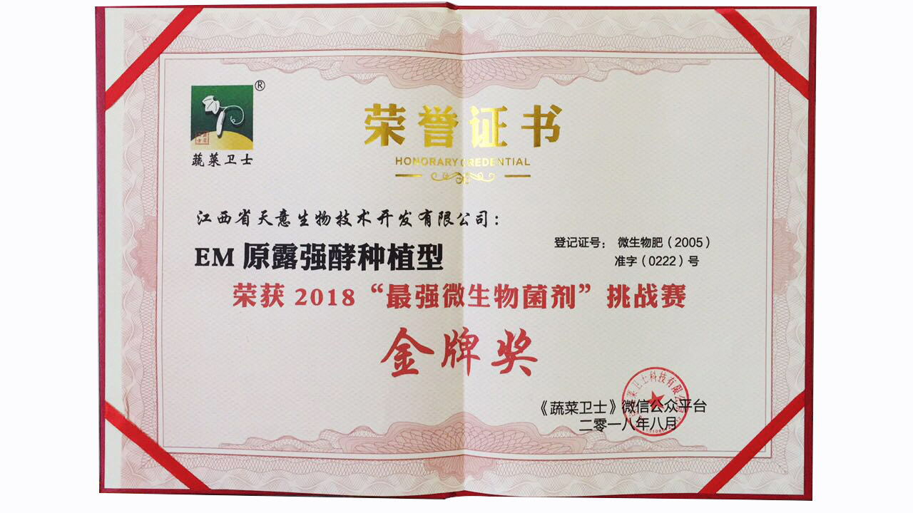 2018年“最強微生物菌劑”金牌獎